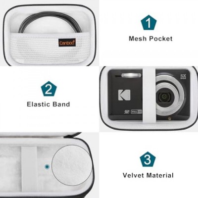Canboc Hard Case for Kodak PIXPRO Friendly Zoom FZ55 / FZ45 / FZ53 16MP Digital Camera, Mesh Pocket fits SD Card, USB Charging Adapter, USB Cable, Black