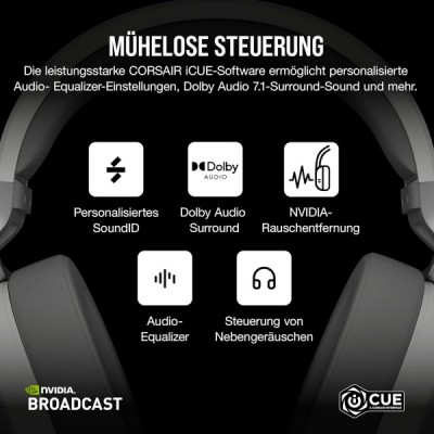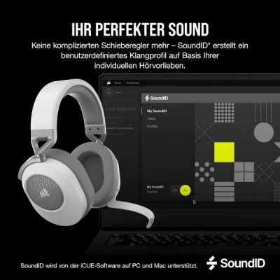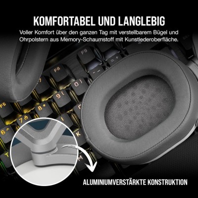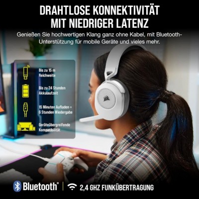 Corsair HS65 Wireless Gaming-Headset - Geringer Latenz 2,4-GHz-Wireless- oder Bluetooth, Dolby® Audio 7.1-Surround-Sound, Leichtgewicht, Omnidirektionales Mikrofon, Zugängliche Tasten - Weiß HS65 WIRELESS Weiß