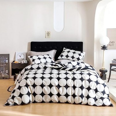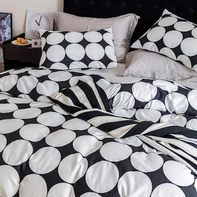 SUSYBAO 화이트 도트 무늬 이불 커버 킹 100% 면 원형 기하학 이불 커버 3개 세트 지퍼 타이가 있는 중립 흑백 이불 커버 1개 베개 커버 럭셔리 소프트 도트 무늬 침구