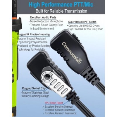 commountain Walkie Talkies Earpiece with Mic Compatible for Baofeng Radio BF-F8HP UV-82 UV-82HP UV-82C UV-5R UV-5X3 and Kenwood TK NX SAMCOM BTECH Retevis Radios, Acoustic Tube Headset, 2 Pin Style