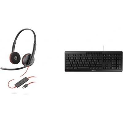 Plantronics - Blackwire 3220, 유선 USB-C 헤드셋 - 마이크 암이 포함된 2이어 헤드셋(스테레오) 및 체리 스트림 키보드, QWERTZ, 유선 키보드, Blue Angel, 키보드가 포함된 블랙 USB-C