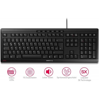 Plantronics – Blackwire 3220, kabelgebundenes USB-C-Headset – Zwei-Ohr-Headset (Stereo) mit Mikrofonarm & Cherry Stream Keyboard, QWERTZ, kabelgebundene Tastatur, Blauer Engel, schwarz USB-C Bundle mit Keyboard