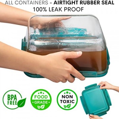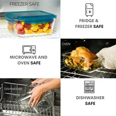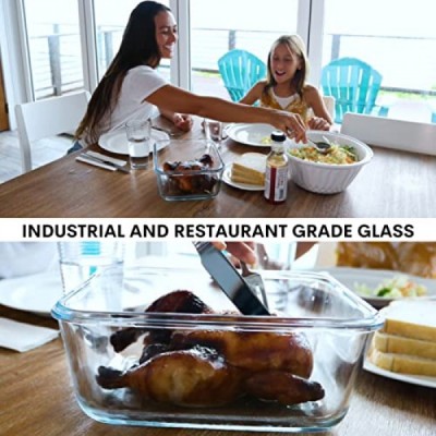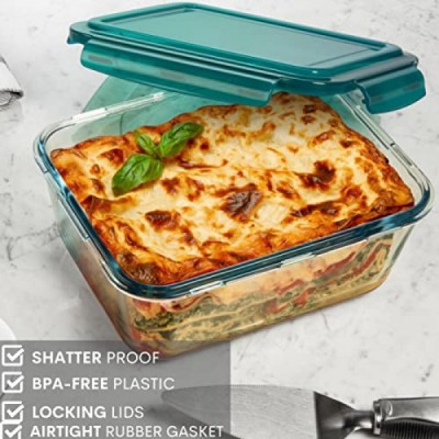 14 Cup/ 112 oz LARGE Glass Food Storage Container with Blue Locking Lid. For Storing food, Vegetables or Fruits. Baking Casserole, Lasagna, Baking, Roasting chicken & lot of other tasty Food BPA Free