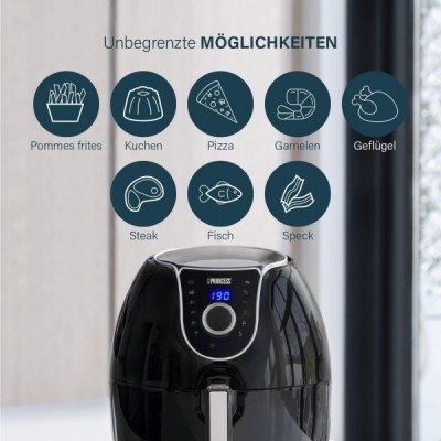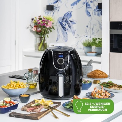 Princess XXL Heißluftfritteuse mit 5,2 Liter – 62,2 Prozent weniger Energieverbrauch – Digitales Display und manuelle Regelung – 8 Programme – Aerofryer 182055