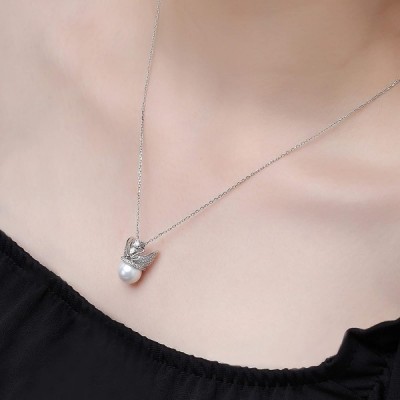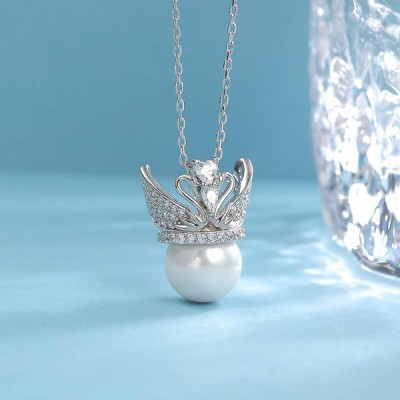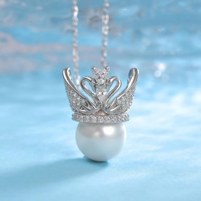 Presentski Swan Pearl Necklace Sterling Silver June Birthstone Heart Crown Dazzling Swan Necklace