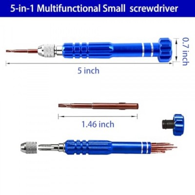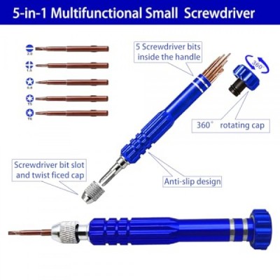 5-in-1 Mini Screwdirver, Glasses Screwdriver, Eyeglass Repair kits, Magnetic Screwdriver Set for Watch, Laptop, Electronics, Jewelry, and More (Blue)