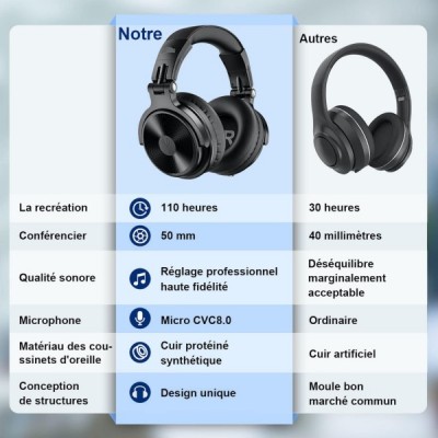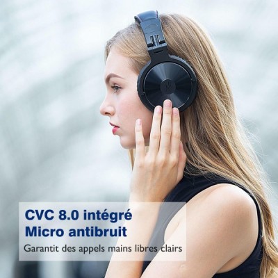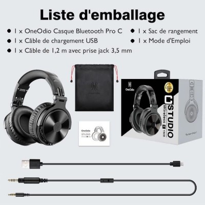OneOdio 블루투스 헤드폰 80시간 재생 스테레오 헤드폰 HiFi 50mm 스피커 내장 마이크 CVC 8.0 헤드폰 무선 스마트폰 PC에 편리 노트북 프로 C 다크 블랙