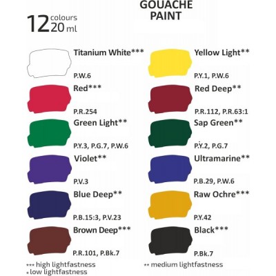 7 Artists Premium Qualität Gouache Farben SET 12x20ml Für Art & Malen - Gouache Paint SET Für Erwachsene Und Kinder 12x20 ml
