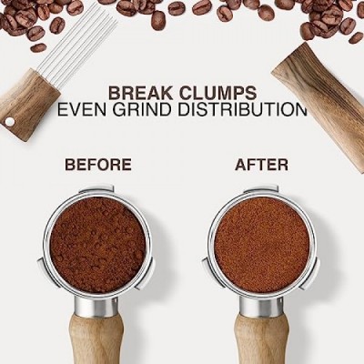 - [부드럽고 쉬운 커피 배포]: 에스프레소 액세서리에 훌륭한 추가 기능인 에스프레소 커피 교반기로 에스프레소 만들기 여정에 혁명을 일으키십시오. 이 도구는 강성과 유연성의 완벽한 균형을 제공하며, 8개의 견고한 스테인레스 스틸 바늘 라이트 61MM, 두꺼운 0.4MM(추가 8개의 바늘 0.3MM)을 갖추고 있어 덩어리를 부수고, 커피를 저어주고, 탬핑하기 전에 분쇄도가 고르게 분포되도록 보장합니다. 결과적으로 추출이 극대화되고 채널링이 최소화됩니다.