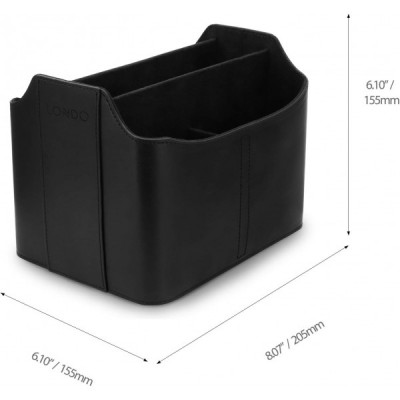 - 제품 1: 치수 - Londo 원격 제어 정리함의 크기는 205 x 155 x 155mm이며, 100 x 50mm 크기의 수납 공간 4개와 205 x 50mm 크기의 태블릿 포켓이 있습니다. 모든 포켓의 깊이는 50mm입니다.