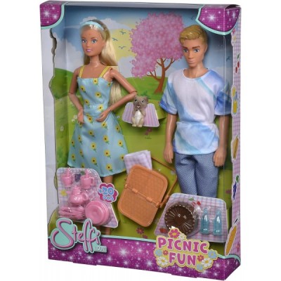 Simba 105733584 - Steffi Love Picnic Fun, Puppe und Ihr süßer Hund picknicken mit Kevin, mit Picknickkorb und Decke, 20 Teile, 29cm Spielpuppen, ab 3 Jahren