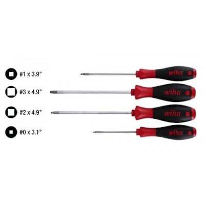 Wiha 35894 SoftFinish Cushion Grip Drivers, Square Tip, 4 Piece Set, No. 0, 1, 2 and 3