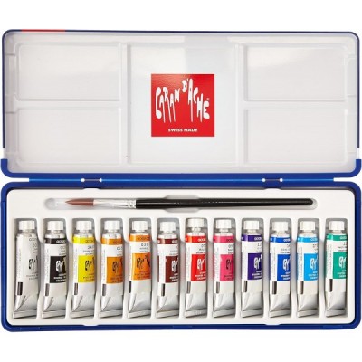 Caran d´Ache 2001.312 Classic Gouache Studio Sortiment mit 12 Farbtuben zu 10 ml, mehrfarbig Set Of 12