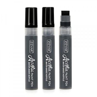 ZEYAR Jumbo Paint Marker Pens, Water Based Acrylic, 15mm Felt Tip, Waterproof and Permanent Ink, Great on Plastic, Posters, Stone, Metal, Glass and more (3 Black)