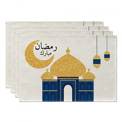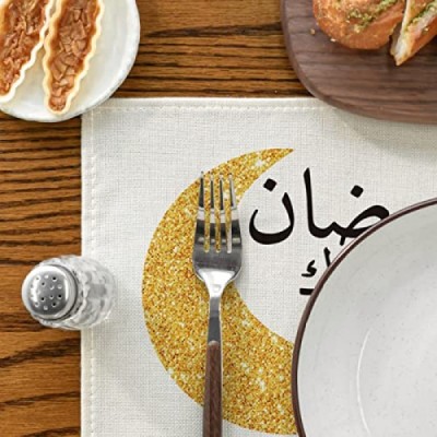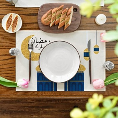 Artoid Mode Bling Bling Moon and Star Ramadan Placemat for Dining Table, 12 x 18 Inch Seasonal Summer Holiday Rustic Washable Table Mat Set of 4
