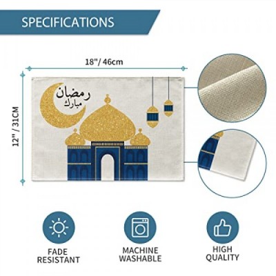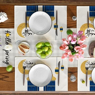 Artoid 모드 블링 블링 달과 별 식탁용 라마단 플레이스 매트, 12 x 18인치 계절 여름 휴가 소박한 세탁 가능 테이블 매트 4개 세트