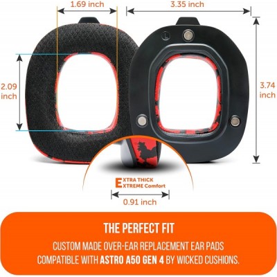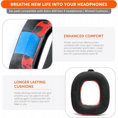 WC Freeze A50 Cooling Gel 하이브리드 패브릭 교체용 이어 패드 Astro A50 Gen 4 전용 Wicked Cushions 제작 내구성, 두께 및 소음 차단 | 레드 카모