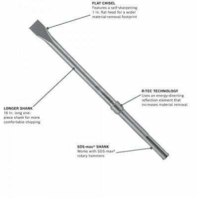 BOSCH HS1903 SDS-max Rtec 플랫 치즐 1인치 x 16인치 , 회색