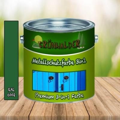Grünwalder Metallschutzfarbe 3in1 premium Metallschutzlack 3-in-1 effektiver Schutzanstrich auf metallischen Untergründen, wie Eisen, Stahl, Aluminium, Zink und Metall (1 L, Laubgrün (RAL 6002)) 1 L Laubgrün (RAL 60