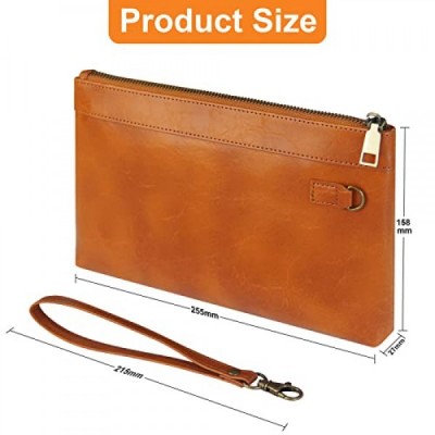 DingGuagua Men's Leather Wrist Bag Business Zip Clutch Bag Money RSE Clutch Bag Handbag Briefcase Mobile Phone Wallet Wristlet Purse for Daily or Travel Use, brown