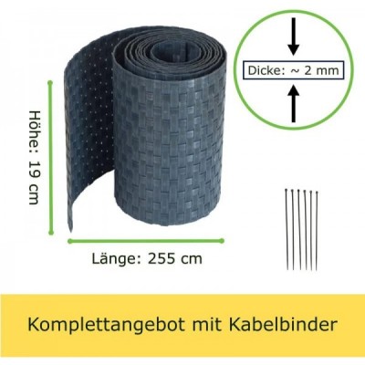 workingHOUSE Polyrattan-Sichtschutzstreifen, Sichtschutz für Doppelstabmatten Zaun, 19 x 255 cm (6 x Schwarz) 6 6 X Schwarz