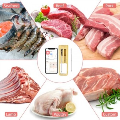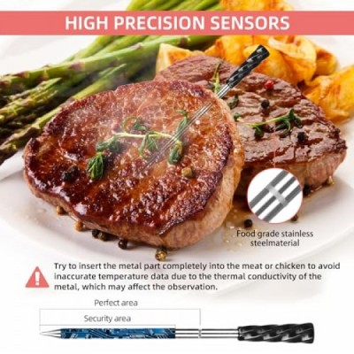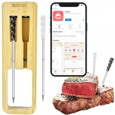MUSICRAB 2-프로브 무선 스마트 고기 온도계 - 장거리 블루투스 범위, 세라믹 프로브 멀티 센서 고기 온도계, 바베큐 오븐 그릴 요리 선물용 방수 식품 온도계