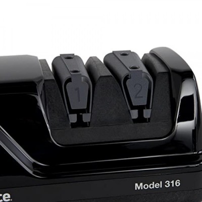 Chef'sChoice 316 다이아몬드 칼날 갈이(15도 칼용), 직선 칼과 가는 칼날을 갈기 위한 정밀 가이드 포함, 2단계, 검정색