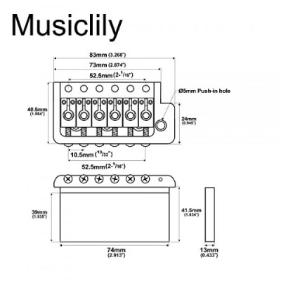 Musiclily Ultra 52.5mm Full Solid Brass 6-Screws PRS-Style Tremolo Bridge Knife Edge for Strat Style Electric Guitar, Black