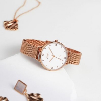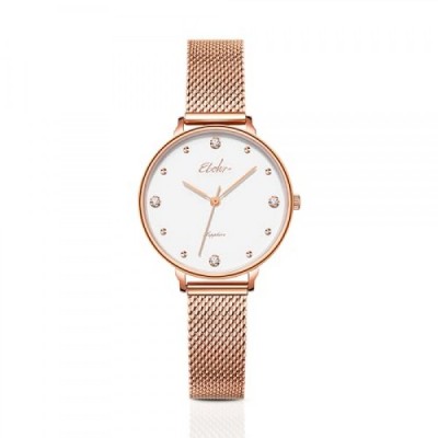 EBOHR Stylish Women's Watch with Sapphire Glass Mirror, Green Sunburst Dial, Silver Metal Woven Strap, Water Resistant, and Simple Design Perfect for Fashionable & Elegant for Modern Women