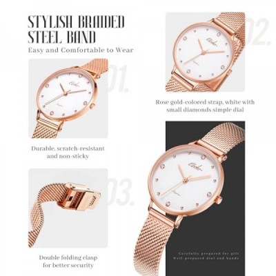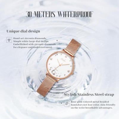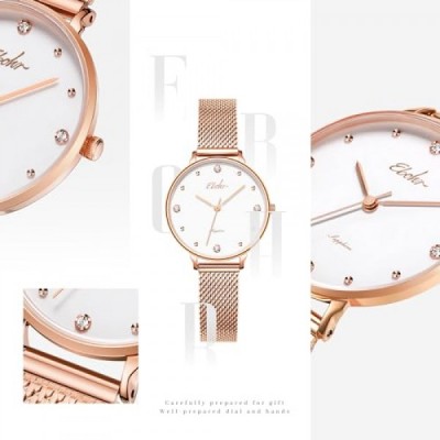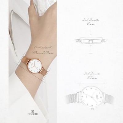 EBOHR 세련된 여성용 시계, 사파이어 유리 거울, 그린 선버스트 다이얼, 실버 메탈 우븐 스트랩, 방수 및 현대 여성에게 완벽하고 세련된 심플한 디자인