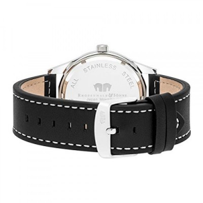 Rhodenwald & Söhne 10010317 남성용 시계 아날로그 일본 쿼츠 무브먼트, 정품 가죽 블랙 스트랩, 실버, 스트랩.