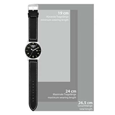Rhodenwald & Söhne 10010317 Men's Watch Analogue Japanese Quartz Movement with Genuine Leather Black Strap, silver, Strap.