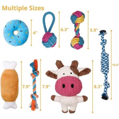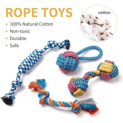MAHA YOGI 강아지, 중소형 강아지용 장난감 [7팩] - 삐걱거리는 장난감, 씹는 장난감, 밧줄 장난감 - 강아지 친화적인 천연 면, 무독성 소재