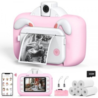Instant Print Kids Camera, Christmas Birthday Gift for Girls 3.5 Inch Large Screen Digital WiFi Kids Camera with 32G SD Card 3-12 Years Old