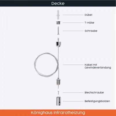 Könighaus Infrared Heater, Ceiling Mounting for Overhead Heating, Cable for Infrared Heating