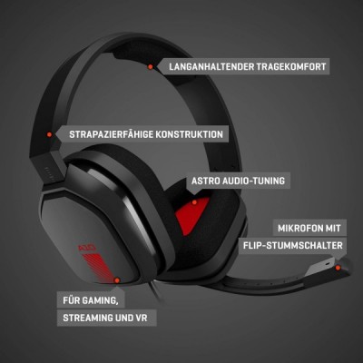 ASTRO Gaming A10 Gaming-Headset mit Kabel, Leicht & Robust, ASTRO Audio, Dolby ATMOS, 3,5mm Anschluss, Xbox Series X|S, Xbox One, PS5, PS4, Nintendo Switch, PC, Mac, Smartphone - Schwarz/Rot