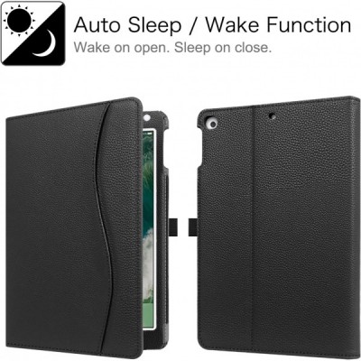 iPad 9.7인치 2018 2017 / iPad Air 2 / iPad Air용 Fintie 케이스 - [코너 프로텍션] 문서 슬롯이 있는 다각도 뷰잉 폴리오 스탠드 보호 케이스, 자동 잠자기/깨우기, 블랙 블랙