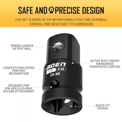 5 Piece Impact Socket Adapter Set and Reducer Set, Standard SAE, 1/4, 3/8, 1/2 Impact Driver Conversions, CR-MO Steel Impact Driver & Wrench Conversion Kit