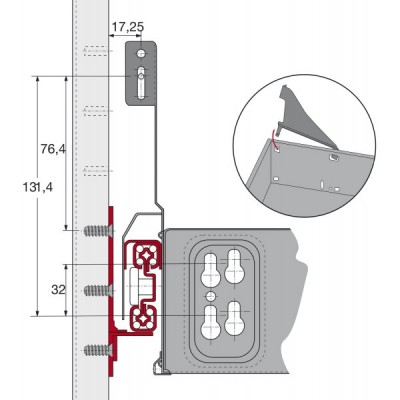 HETTICH 20571 Systema Top 2000 페시아 서포트(서포트), 스틸 알루미늄 이펙트, 실버