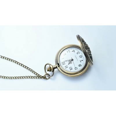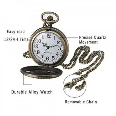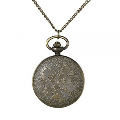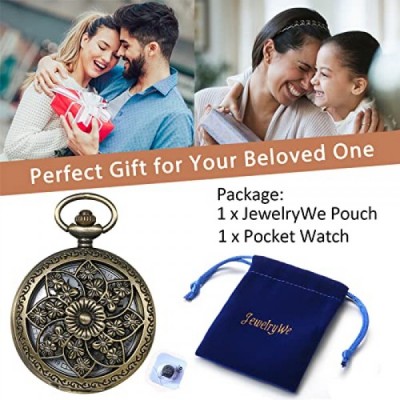 JewelryWe 레트로 동백 꽃 주머니 시계 여성 남여 아날로그 석영 시계 목걸이 체인 주머니 시계 선물
