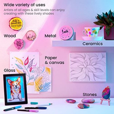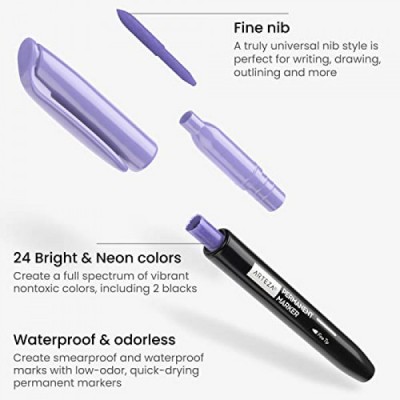 ARTEZA Colored Permanent Markers, Set of 24 Fine Tip Paint Pens, 23 Bright and Neon Colors, Waterproof Rock Painting, Art and Craft for Glass, Wood