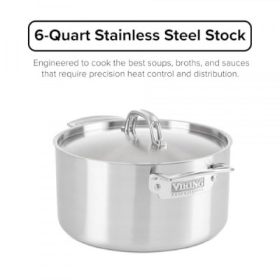 Viking Professional 5-Ply Stainless Steel Stockpot with Lid, 6 Quart, Silver