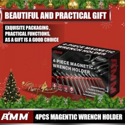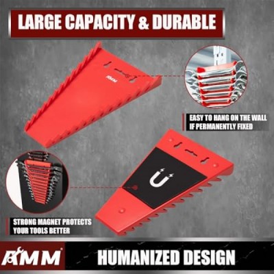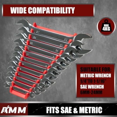 4팩 자석 렌치 정리함, 도구 상자 서랍장 및 벽걸이용 48슬롯 자석 렌치 홀더, SAE(1/4 - 1-1/16) 및 미터법(6mm-24mm)