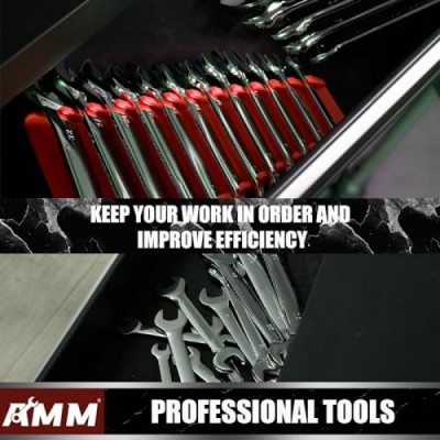 4 Pack Magnetic Wrench Organizer, 48-Slot Magnetic Wrench Holder for Tool Box Drawer Chest&Wall Mounted, SAE(1/4 - 1-1/16) and Metric(6mm-24mm)