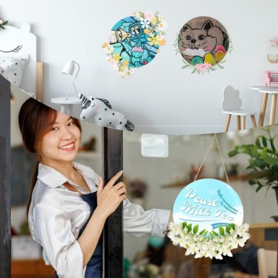 Ksvaye 12 Pcs 라운드 나무 디스크 공예에 대 한 20cm 직경 나무 접시 천연 나무 디스크 처리되지 않은 3mm 두꺼운 합판 합판 보드 발사 나무 나무 디스크 장식 공예 그림