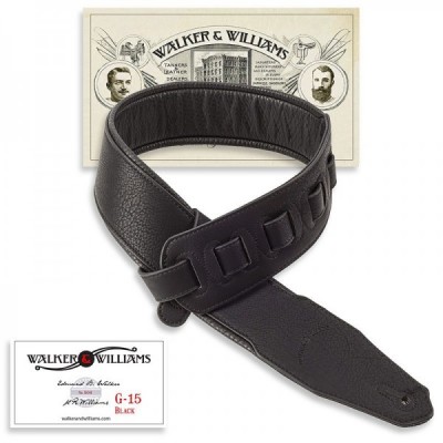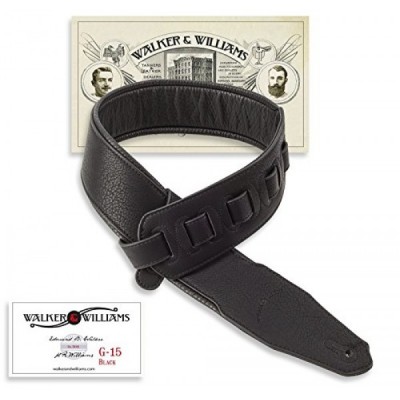 Walker & Williams G-15 어쿠스틱, 일렉트릭 및 베이스 기타용 두꺼운 패딩이 있는 블랙 가죽 천연 질감 기타 스트랩
