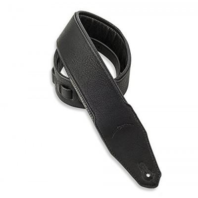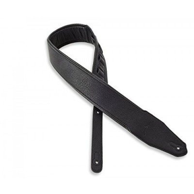 Walker & Williams G-15 Black Leather Natural Texture Guitar Strap with Thick Padding For Acoustic, Electric, And Bass Guitars