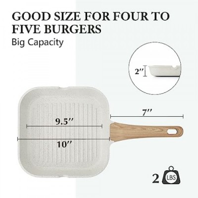 SENSARTE Nonstick Ceramic Grill Pan for Stove Tops, Versatile Square Grilling Pan with Pour Spouts, Durable Grill Skillet for All Stoves(Gas,Electric,Induction) Non Toxic-PTFE,PFAS,PFOA Free, 9.5Inch
