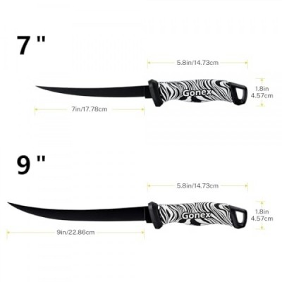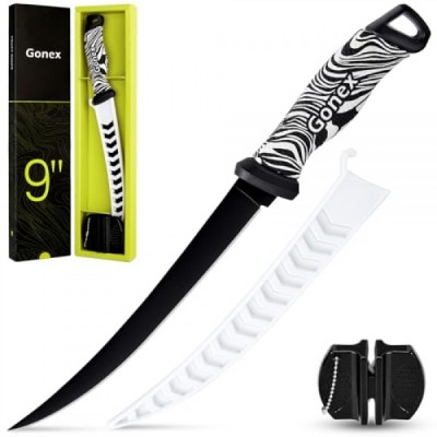 Gonex 생선 필렛 칼 낚시 본딩 나이프, 고기 절단용 낚시 장비 도구 세트, G4116 독일 스테인레스 스틸 블레이드, 미끄럼 방지 손잡이, 보호 덮개 및 2단 샤프너, 9인치
