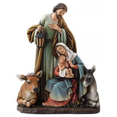 Joseph's Studio by Roman - 헛간 동물이 포함된 슬림 프로필 성가족 인물, 7.5" H, 수지 및 석재, 장식, 컬렉션, 내구성, 오래 지속, 우아한 디자인